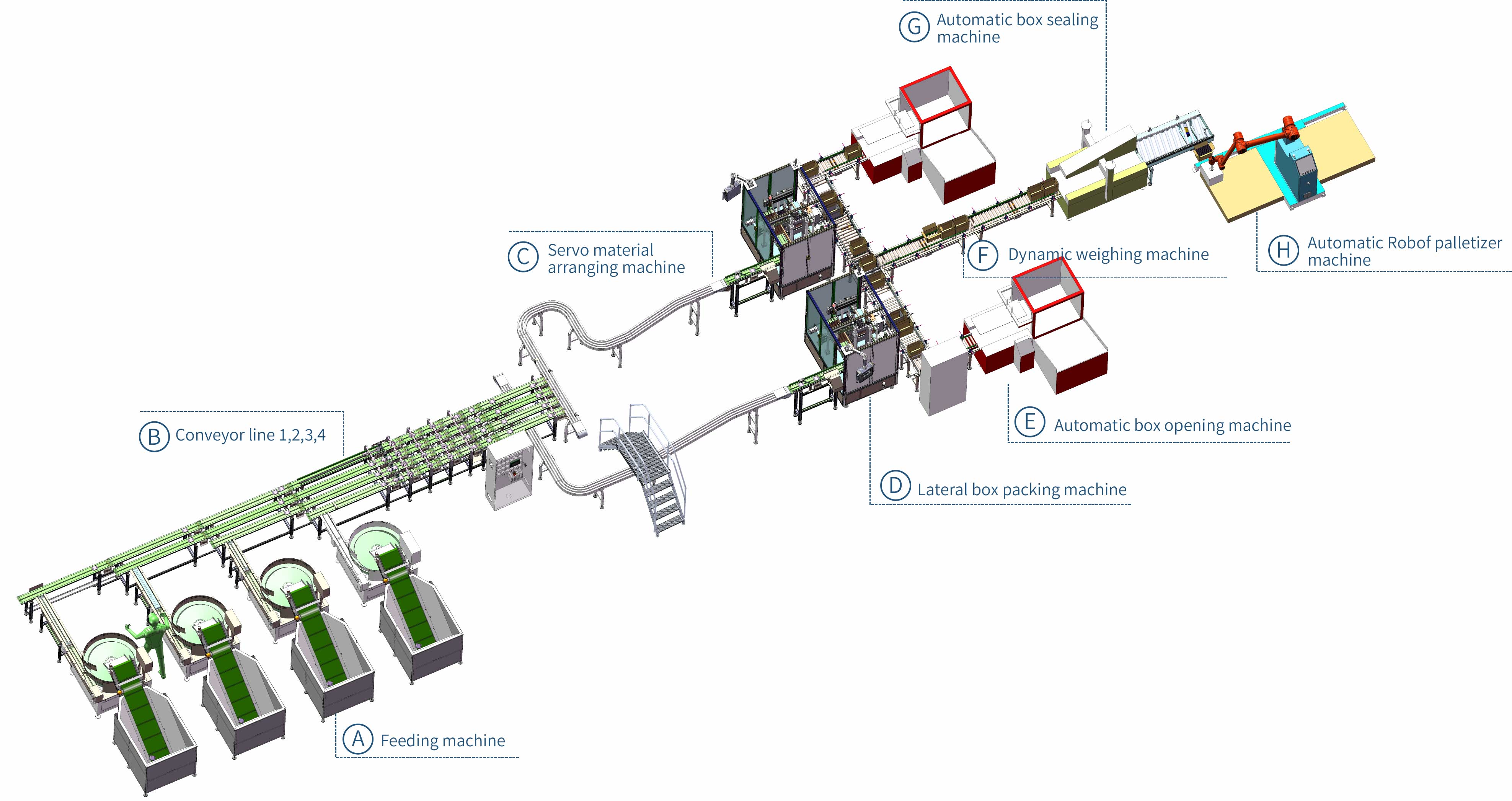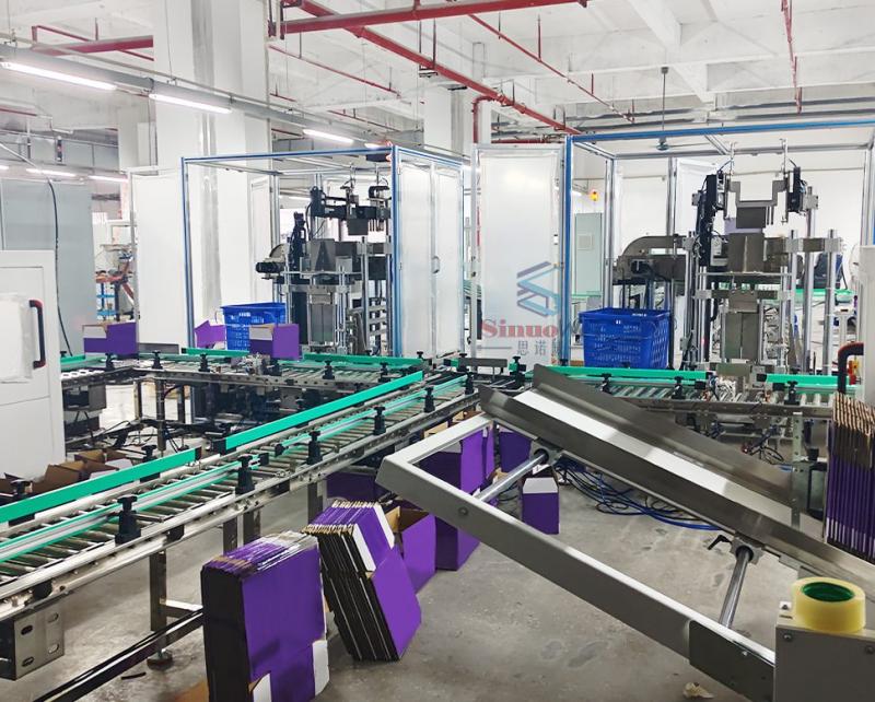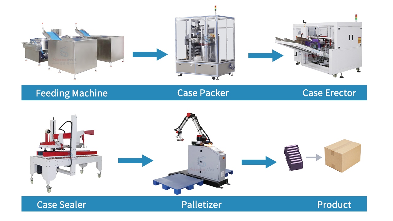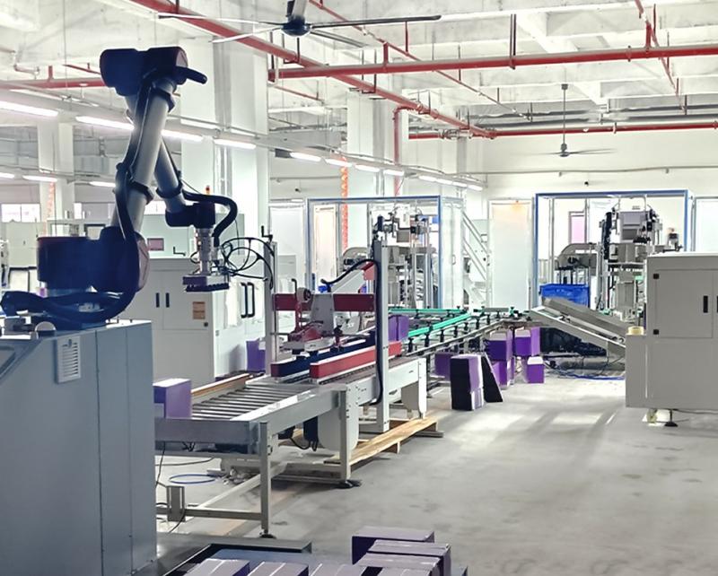 Автоматизированная линия упаковки пищевых продуктов обеспечивает полную автоматизацию процесса от фасовки в пакеты до упаковки в коробки и паллетирования. Операторам достаточно засыпать пищевые продукты в подающий лоток, и оборудование автоматически выполнит такие задачи, как выравнивание материала, упаковка в коробки, запечатывание и паллетирование. Это значительно повышает эффективность производства, снижает трудозатраты и обеспечивает высокоскоростной, стабильный и стандартизированный процесс упаковки.